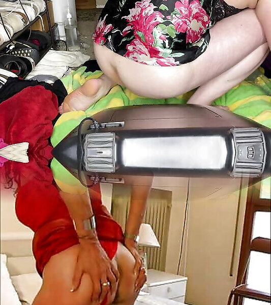 Giant buttfuck fake penis with 6 ball-sac - Taking it all in to my sissy arse