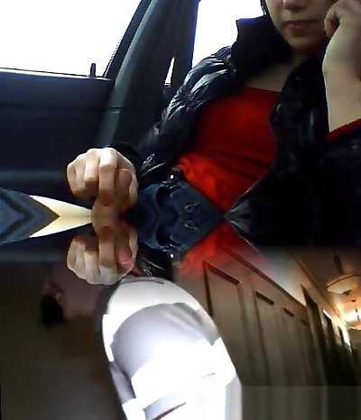 T-girlfriend and boyfriend masturbate off each others cocks in a car