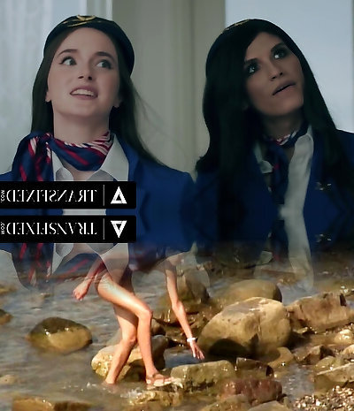 Lovely Busty Teen Stewardess Loves Gonzo Sex With Her Charming Brunette Shemale Colleague