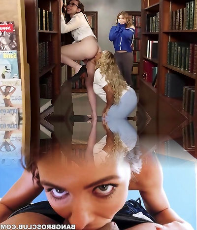 Curvy Busty Blonde Ebony Gal Enjoys Gonzo 3-some With Two Sexy She-creatures In the Library