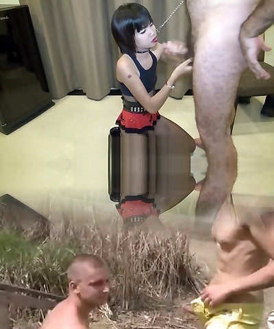 Enchanting Japanese shemale masturbates the man meat like a professional