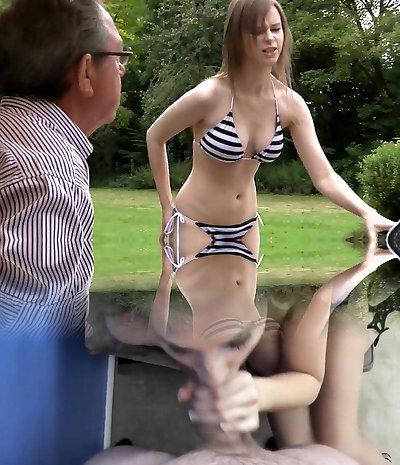 Busty sweetie in swimsuit Beata Undine gets her hirsute muff pounded by an aged man